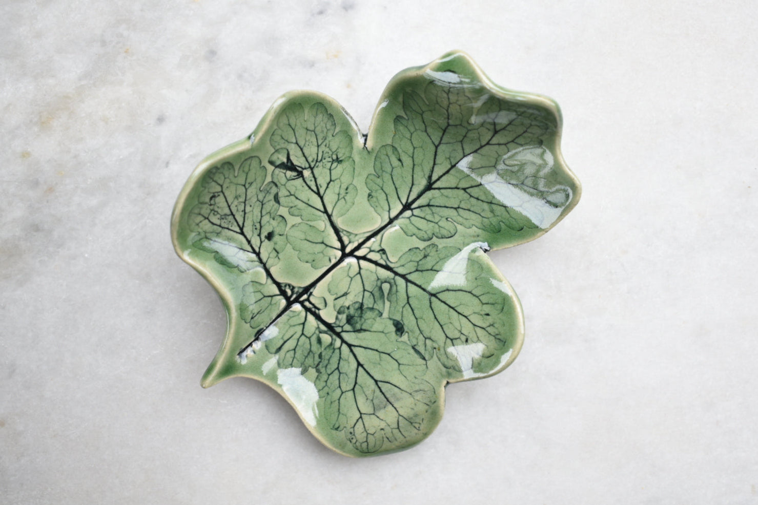 These leaf shaped trinket dishes have become one of my recurring products. I love walking around in nature and collecting various leafs to make imprints from. These trinket dishes will transform with the seasons, depending on what plants are in bloom.